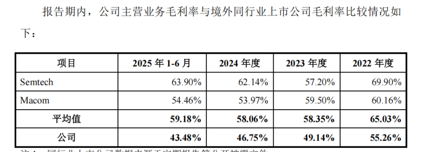 此外,优迅股份的研发费用率在2022年至2025年上半年持续下滑,从2022年的21.14% 下降至2024年的19.10%,并在2025年上半年进一步降至15.81%。